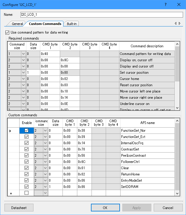 - LCDのスレーブアドレスは、0x7C(データシートで要確認)