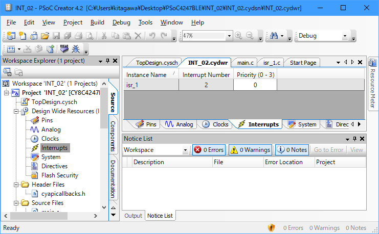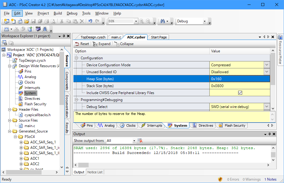 Cypress Semiconductor社PSoC Creator 関連のメモです。ここでは、PSoC4を使用しますが、PSoC3, PSoC5でも同じです。